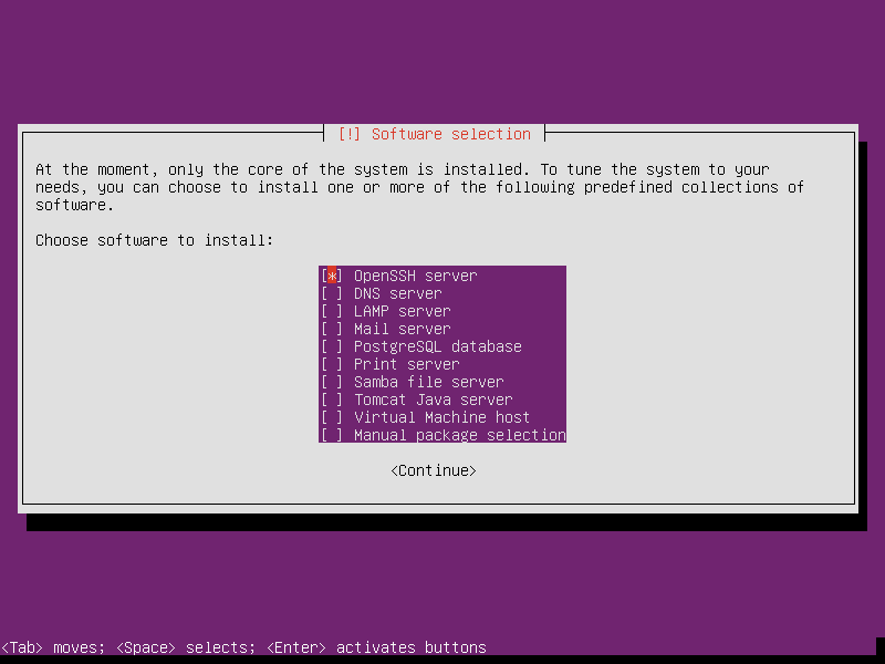 추가 설치할 소프트웨어를 선택합니다. OpenSSH Server를 선택한 후 진행합니다.