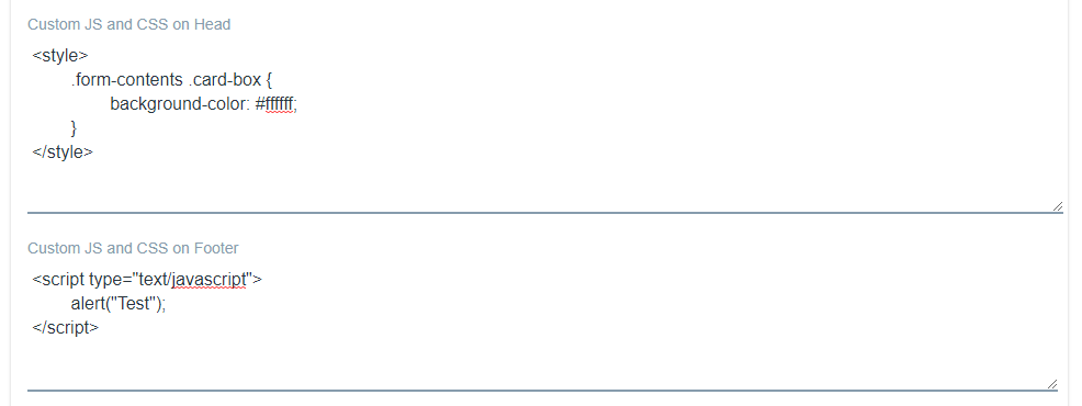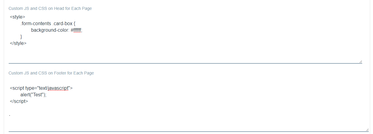 • Custom JS and CSS on Footer : Manage custom javascript or css tag on footer section for this page .