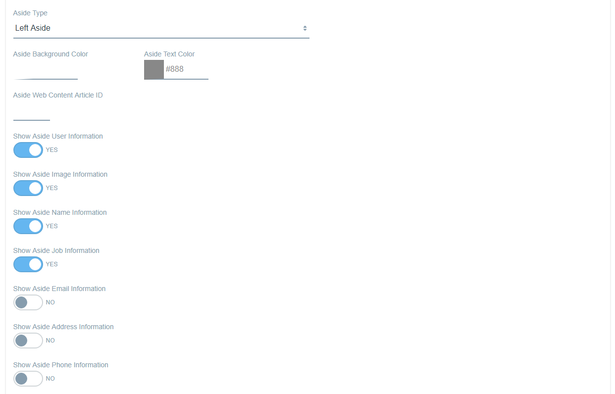 • Show Aside Image Information : Select to display user's profile picture on aside.