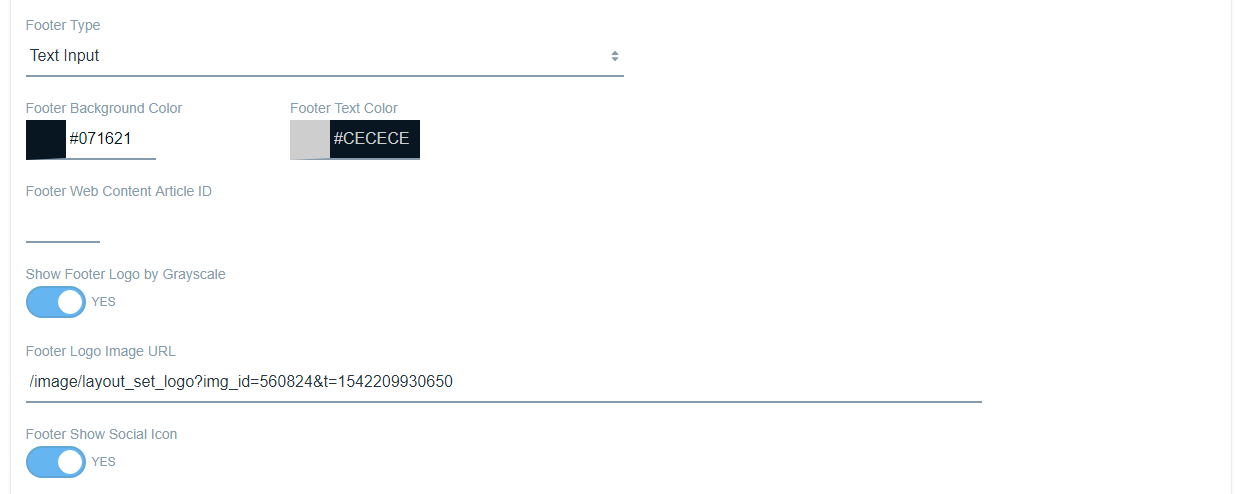 • Footer Show Logo Grayscale : Select to display footer logo in grayscale color.